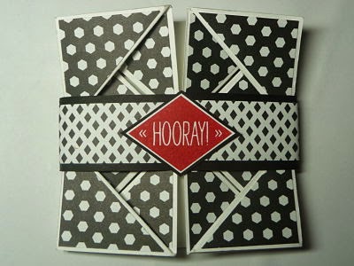 The stamps used come from the matching stamp set for this set of papers A Happy Hooray and the hostess set  Because You Care. Both these sets are retiring also.