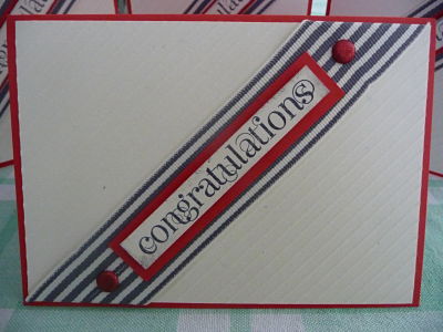 So I have diagonally scored the Confetti White card to create an embossed background for my card. I had hoped it would show up more clearly in the single photo. The ribbon was added as a feature, it is Basic Grey striped grosgrain. the congrats sentiment is from one of my favourite sets – Curly Cute. A touch of bling was the final addition with Poppy Parade glimmer brads to co-ordinate with the Poppy Parade cardstock.