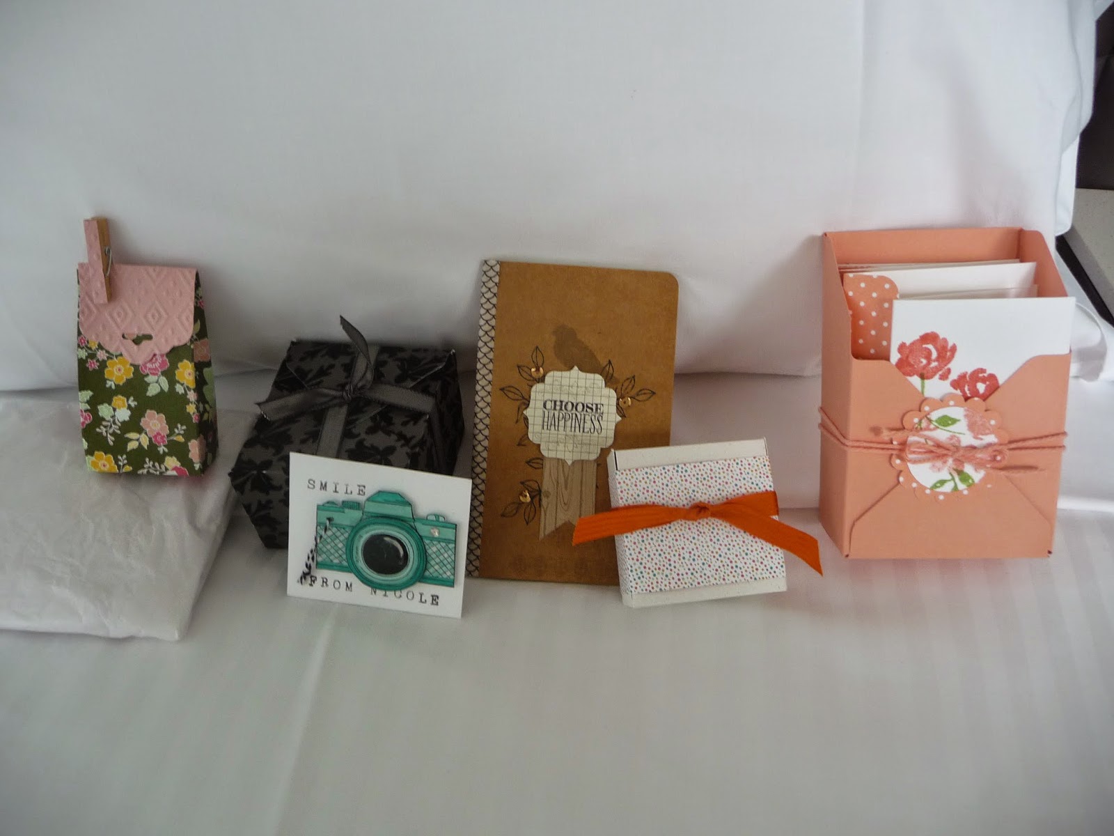 My gifts to my roomies are the kraft journal and the little gift box with the Tangelo Twist ribbon. Inside was a pot of lip wax.