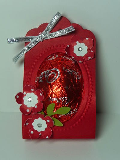 With the Oval Designer Frame Embossing Folder position it between the top and the score line on one of the side, Run through the Big Shot to emboss. Repeat the same step on the other side. I found this was needed to fit the size of the eggs I was using.
