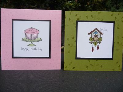 If you wanted to jazz these up a bit more you could add glitter highlights or add an extra layer to the stamped image by highlighting an aspect of one of the images. For example you could restamp the image, colour just the icing of the cupcake and cut it out and adhere over your image already on the card.