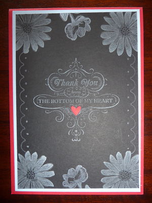 Here is another sample of the technique Faux Chalkboard. If you would like to learn this cute technique, then come along to my class this week on Thursday night March 28 at 7.30pm or Saturday March 30 at 1.30pm.