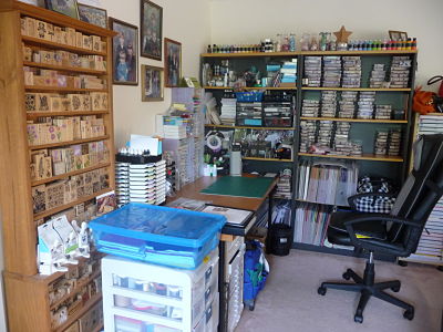 All my spare supplies have had to move from the study into the dining room, our bedroom and hallway so that has been a bit of a juggling act trying to work out where to store my most required stamping goodies and business needs, time will tell if I have it right!