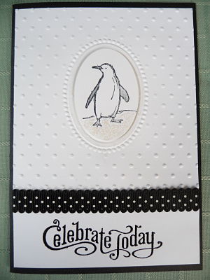 And for other times of the year and occasions – the same technique done using Zoo Review stamp set. There is Dazzling Diamonds for snow at the feet of the penguin but it does not show up that well in the photo.