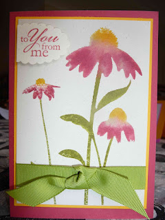 class I thought I would put up some of the cards I made using one of the techniques from the class. These are made using Stampin’up!’s lovely marker pens.