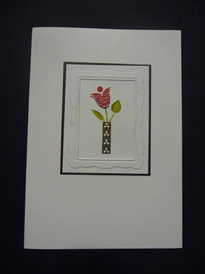 This one I CASED from Pinterest. I really like the effect of the embossing on the die cut card pieces.