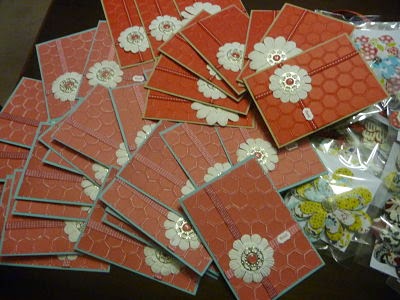 I have spent ages making team and general swaps. I started planning my team swaps at the start of the year and have been making them since March. I got everything finished last night,what a great feeling to have them all completed. Here are some photos of them en mass before I packed them into my half empty suitcase. ( A demonstrator goes with a case that is big and empty so as to fit in all the purchases that she will make in Memento Mall at Convention!!!!)