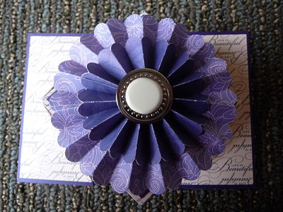 Do you like my fan fold flower? I thought it made a lovely decoration for my diamond fold card. When it comes to decorating one of these cards you can let your imagination run wild! Once you have the basic structure folded you can add all sorts of embellishments, panels or stamped images to your card.