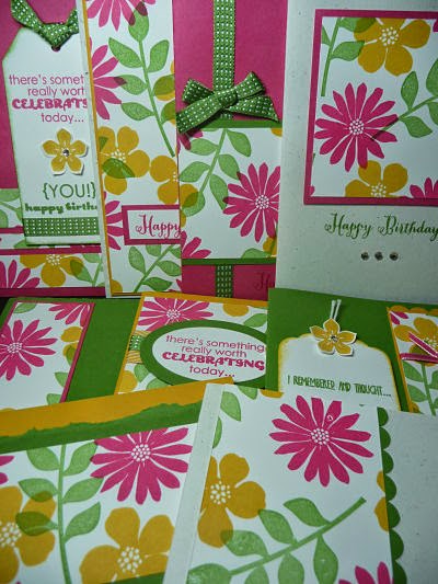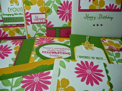 Here are my first collection of samples. In class you will make 9 cards this month. Plenty of birthday cards for the coming months!!!!