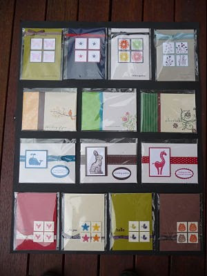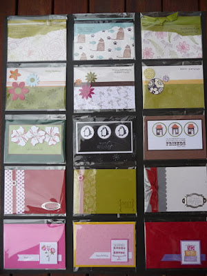 Sorry about the cello bag reflections. Some of these cards you have seen in earlier posts, but I wanted to show you how the overall look was so as customers could see how one layout could be changed by using different stamps, papers, embellishments and colours.