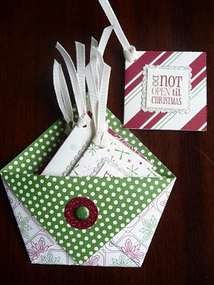 I will be on the front desk and my Stampin’Up! team will be manning the Stampin’Up! stand, doing demonstrations with the Simply Scored Tool, free make and takes and teaching classes. I’ll also be teaching a Quick Class in the afternoon – a cute pouch with Christmas tags which would make a great teacher gift. That’s it below.