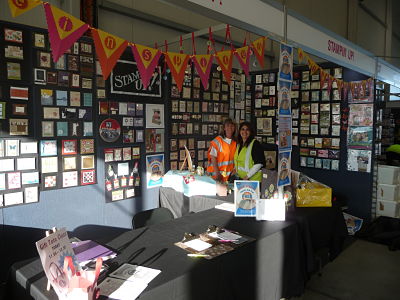 Here are Tracy and Rose, two of my lovely downline who came along to help set up our Stampin’Up! stand at Paperific today. Hence the safety vests! The posters done by the deomonstrators taking part in this show are fabulous. Make sure to drop by to see them and to say hello!