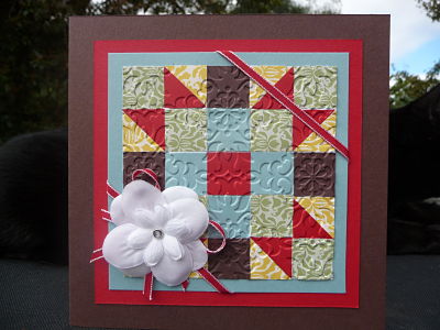 Here is a sample card for my next class in April. We will be making this patchwork card.