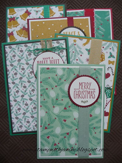 In my Quick Christmas Card class you will make 6 easy cards all using the same layout. The cards are pictured below.
