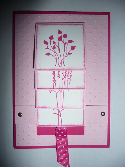 I’ve finally used my Big Shot to show you what it can do!!! The Perfect Polka Dot embossing folder was used to create the background in the Pocket Silhouettes waterfall card. It really is very effective.