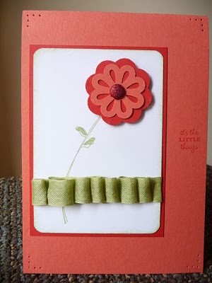 There are so many wonderful new items in the 2011-2012 Stampin’Up! Idea Book & Catalogue. I’ve used four of them to create this quick card. Can you pick them?