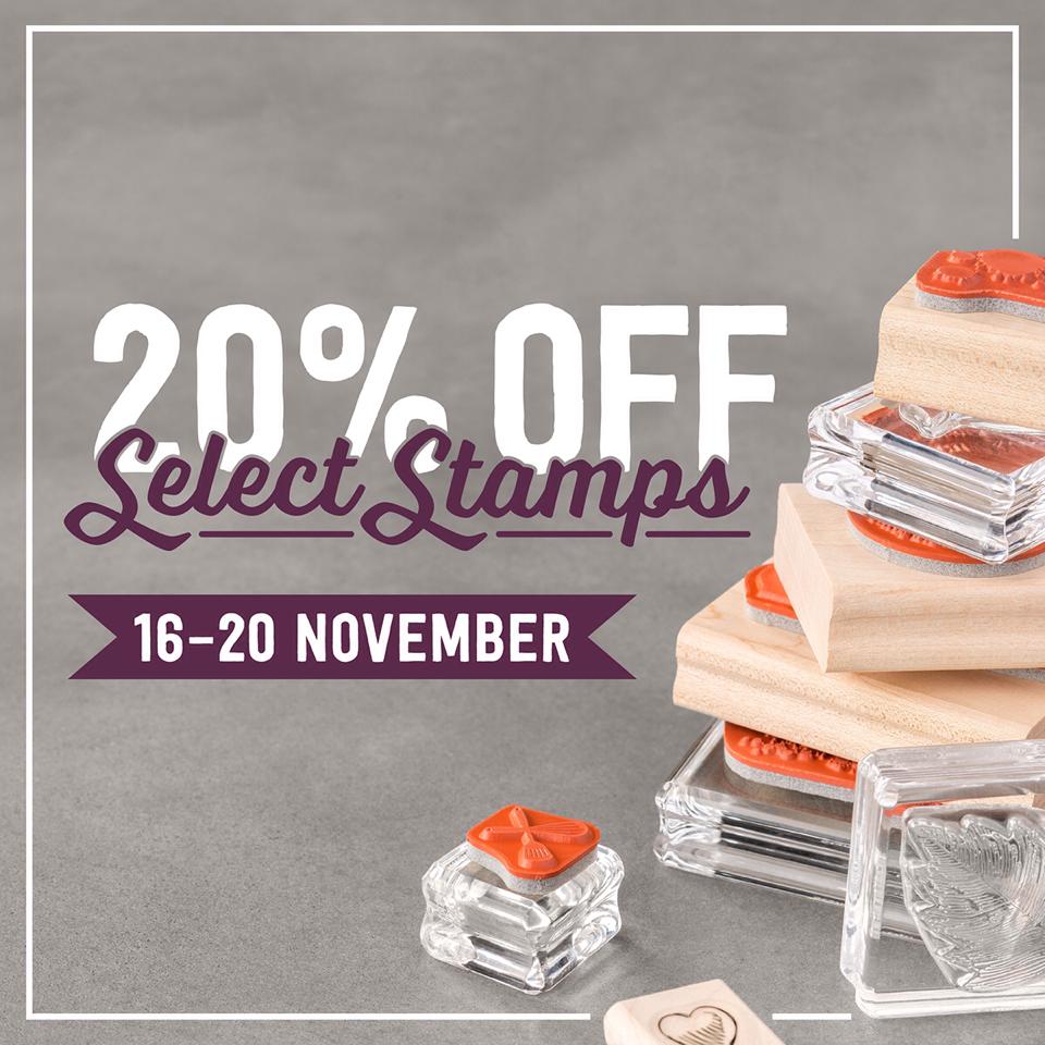 Yes that’s right 20% off selected Stampin’Up! stamps for a short time only! From today Nov 16 to Nov 20 you can purchase selected stamp sets at 20% off the regular price.