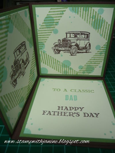 Tomorrow is Fathers Day here in Australia. This corner pop up card has been one of my card class samples for this month and now it will be used by my hubby to give his Dad tomorrow. I have two more classes to teach so looks like I will have to remake the card as a male birthday card!