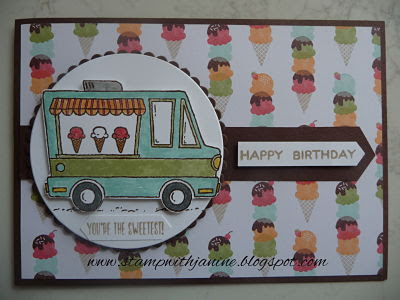 We have an Inksationals team meeting next week and I gave the members of my team who are able to attend a challenge. If they have the Tasty Trucks Sale-a-bration stamp set, to make a card and bring it along to share with everyone. I had not yet played with my set so this was an extra incentive to get me using my Tasty Trucks stamp set!