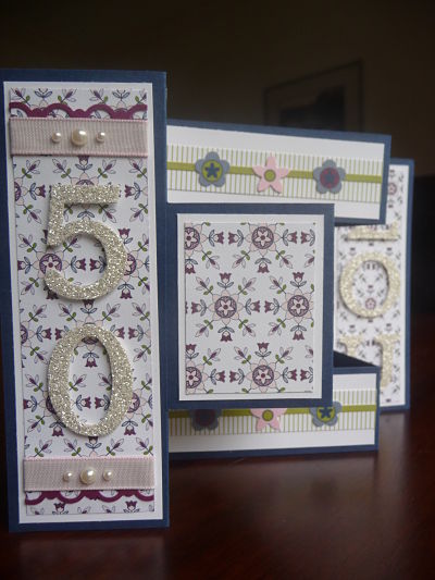 My brother is being a terrific agent for me. He recently asked if I would make a 50th birthday card for one of his colleagues to give her daughter. The only request being the card should have the recipients name and 50 on it.